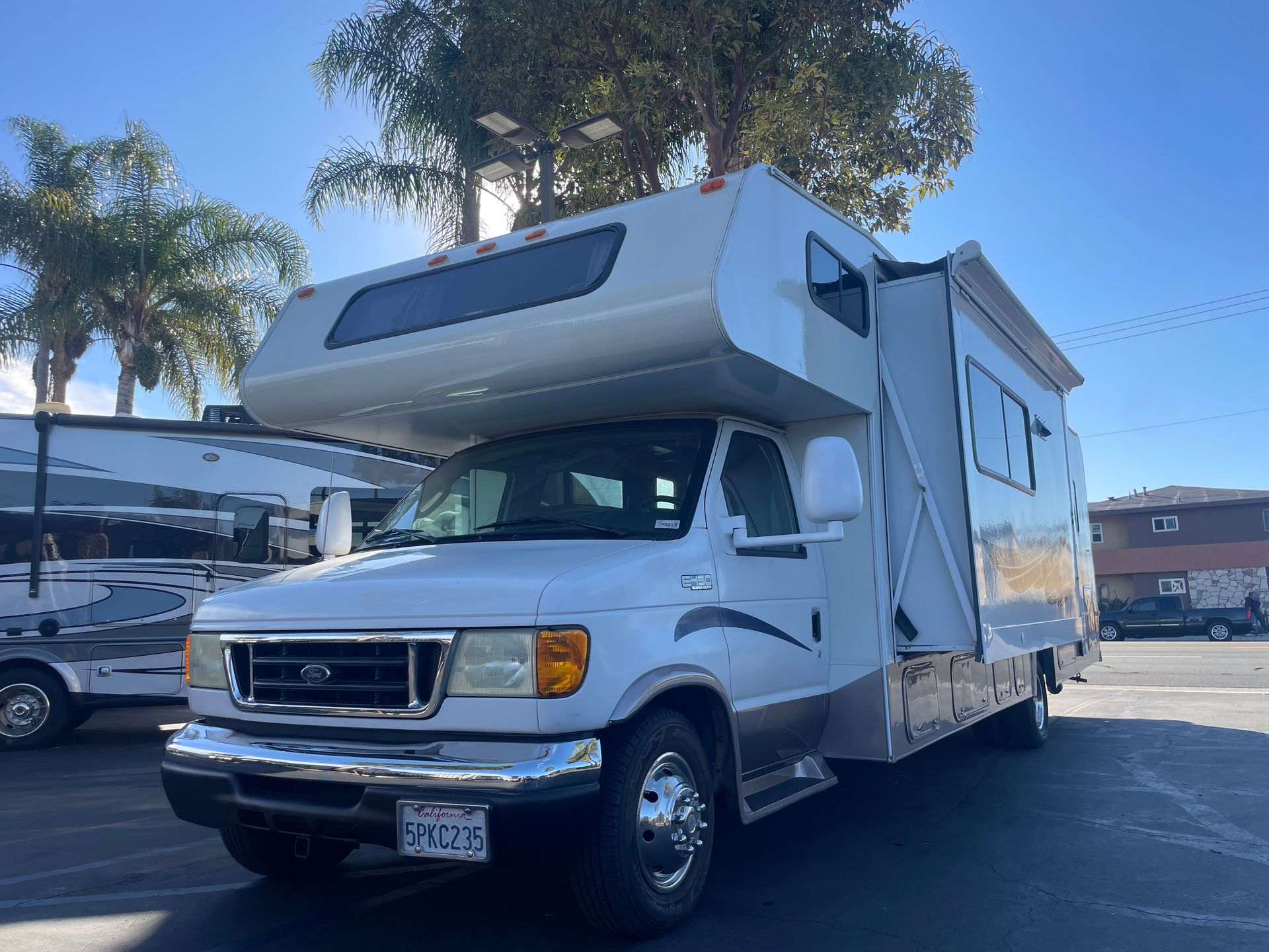 I own a small, licensed and bonded dealership in beautiful Orange County. I strive to have the nicest pre-owned on the market by spending lots of time and money on each of my coaches before they go back up for sale. There are no games and absolutely NO PRESSURE SALES...I don't believe in it. You only deal with me, the owner, until you buy and then you have the option of getting a walk through with the tech who went through the systems. I consider all forms of trade ins EXCEPT land. I also consider consignments. Tax, license, smog, doc and normal govt. fees not included in price-NO SURPRISES. Called to serve, I am more than happy just to give RV advice if you want/need it...I'm friendly. If I sound like someone you would like to do business with, please give me a call. Jeff (213) 210-5535-all class rv-1 2501 W Whittier Blvd., La Habra, CA 90631-DLR#47490 Vin#1FDXE45S05HA83743 $24,950 FIRM. MORE PICTURES at allclassrv.com/sales