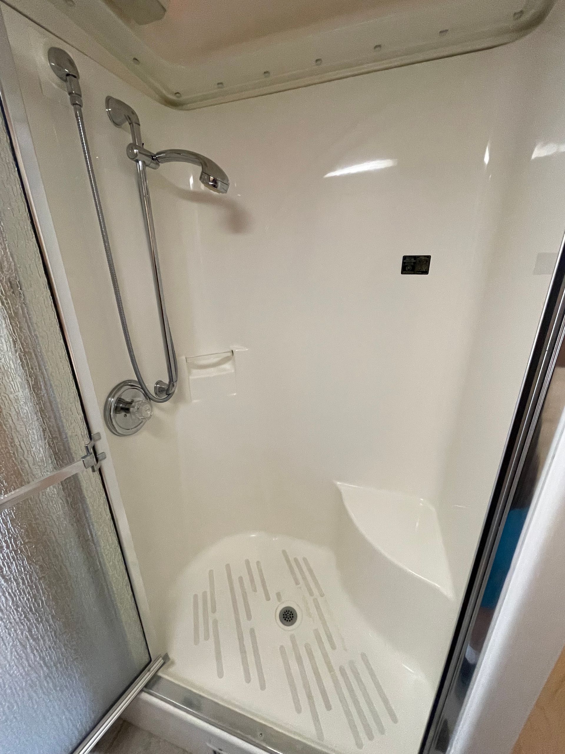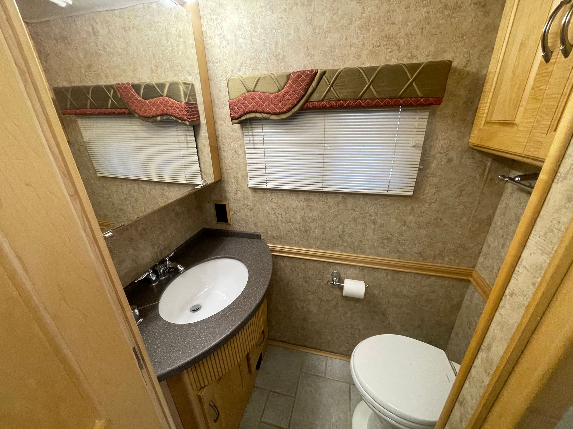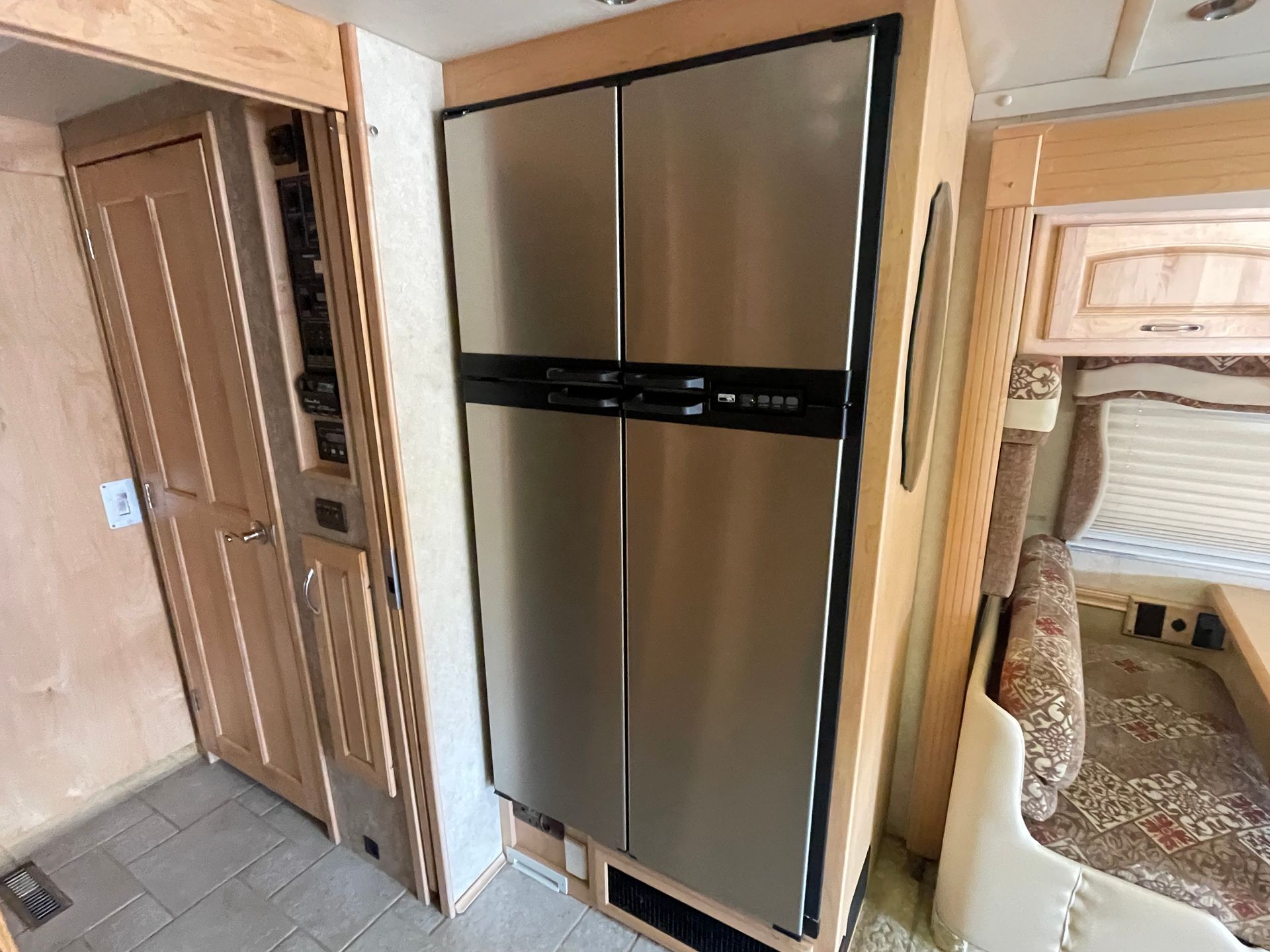 2 Sofas, TV, Dinette, 2 Bay Sink, Oven , 3 Burner Stovetop, Microwave, 4 Door Refrigerator/ Freezer, Plenty of Counter-space, Huge Shower, Porcelain Toilet, King Bed, TV, Washer/ Dryer, Bedroom Sink and Vanity Mirror,