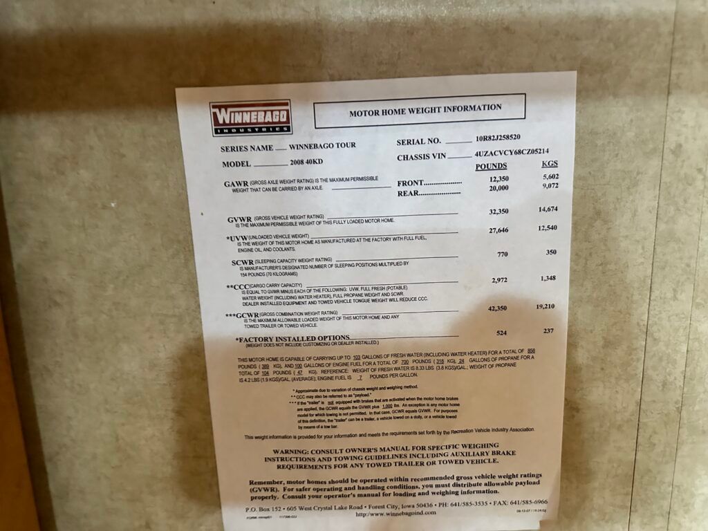 SOLD - 2008 WINNEBAGO TOUR 40KD - $79,950