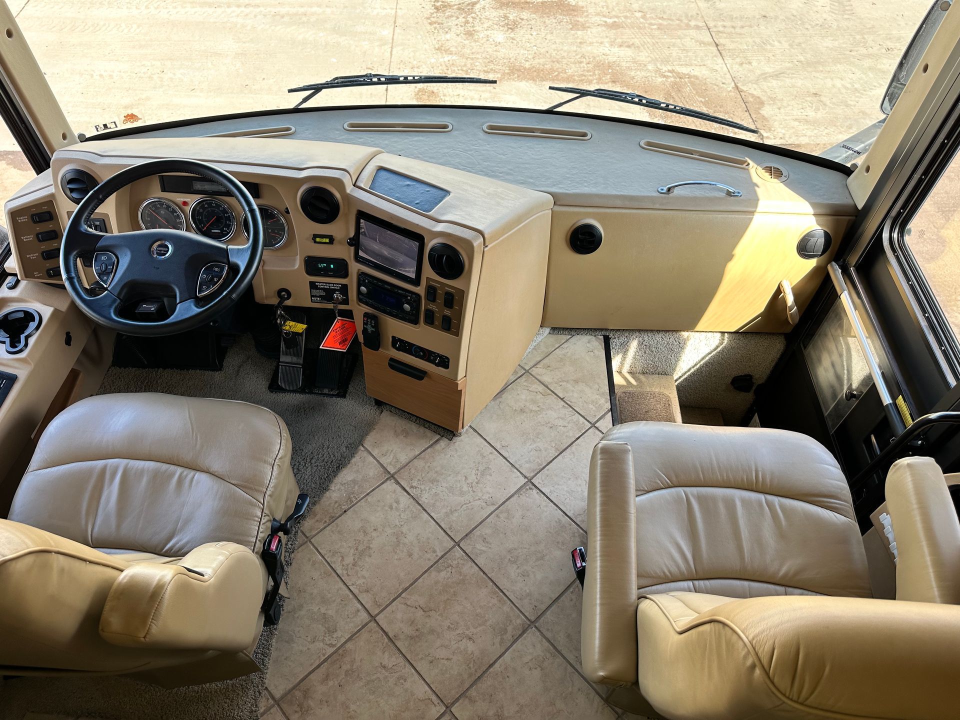 Freightliner Maxum Chassis, Cummins ISL 8.9L turbo-charged diesel, 400-hp w 50,897Mi, rear radiator, Allison 6-speed electronic 3000 MH transmission, NeWay front & rear air suspension, 170-amp. alternator, 4-wheel ABS, engine compression brake, Full Body Paint, Passthrough Storage, 8000w Onan Generator, 10k Towing Capacity, & Much More!!!