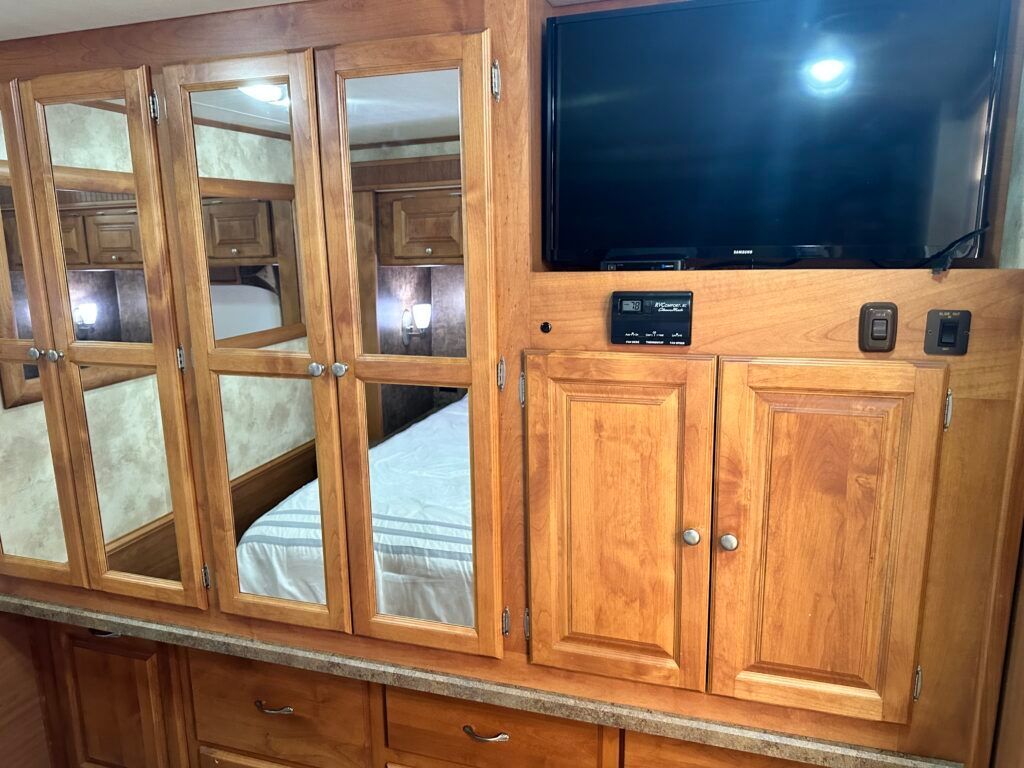 Heated Mirrors, Beautiful Driver & Passenger Power Seats, Back-up & Side View Cameras with Color Monitor, 2 AC Units, Beautiful Flooring & Wood Cabinetry Throughout, Flatscreen TV, Loveseat w Sleeper, Booth Dinette w Bed, Nice Kitchen Area, Corian Countertops, 3 Burner Stovetop & Oven, Convectional Microwave Oven, Pocelain Sink w Stainless Steel fixtures, 2 Door Large Residential Refrigerator, Close-off Bathroom w Porcelain Toilet, Sink & Vanity, Glass Door Enclosed Shower, Close-off Bedroom w Walkaround Queen Size Bed, Large Wardrobe & Closet Area, Flatscreen TV, Lots of Storage, & MUCH MORE!!!