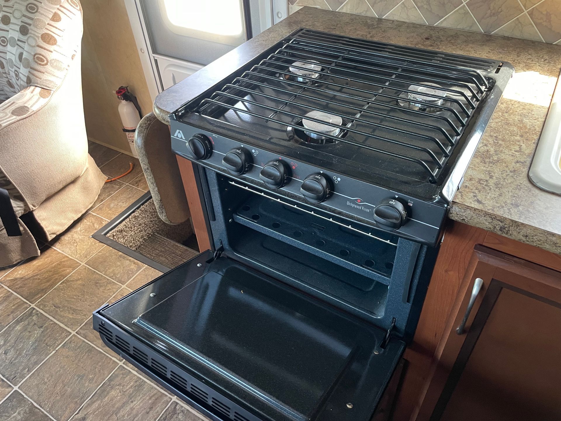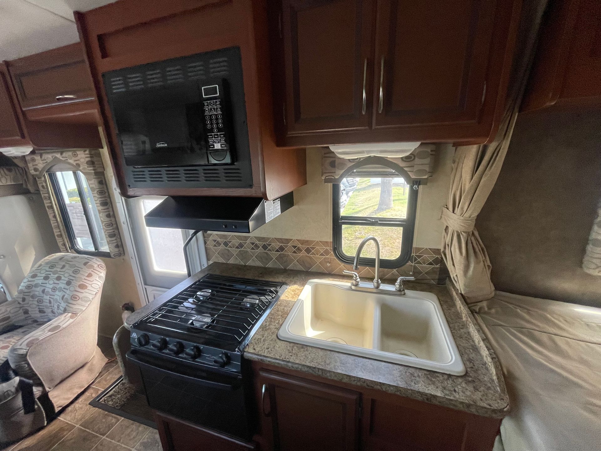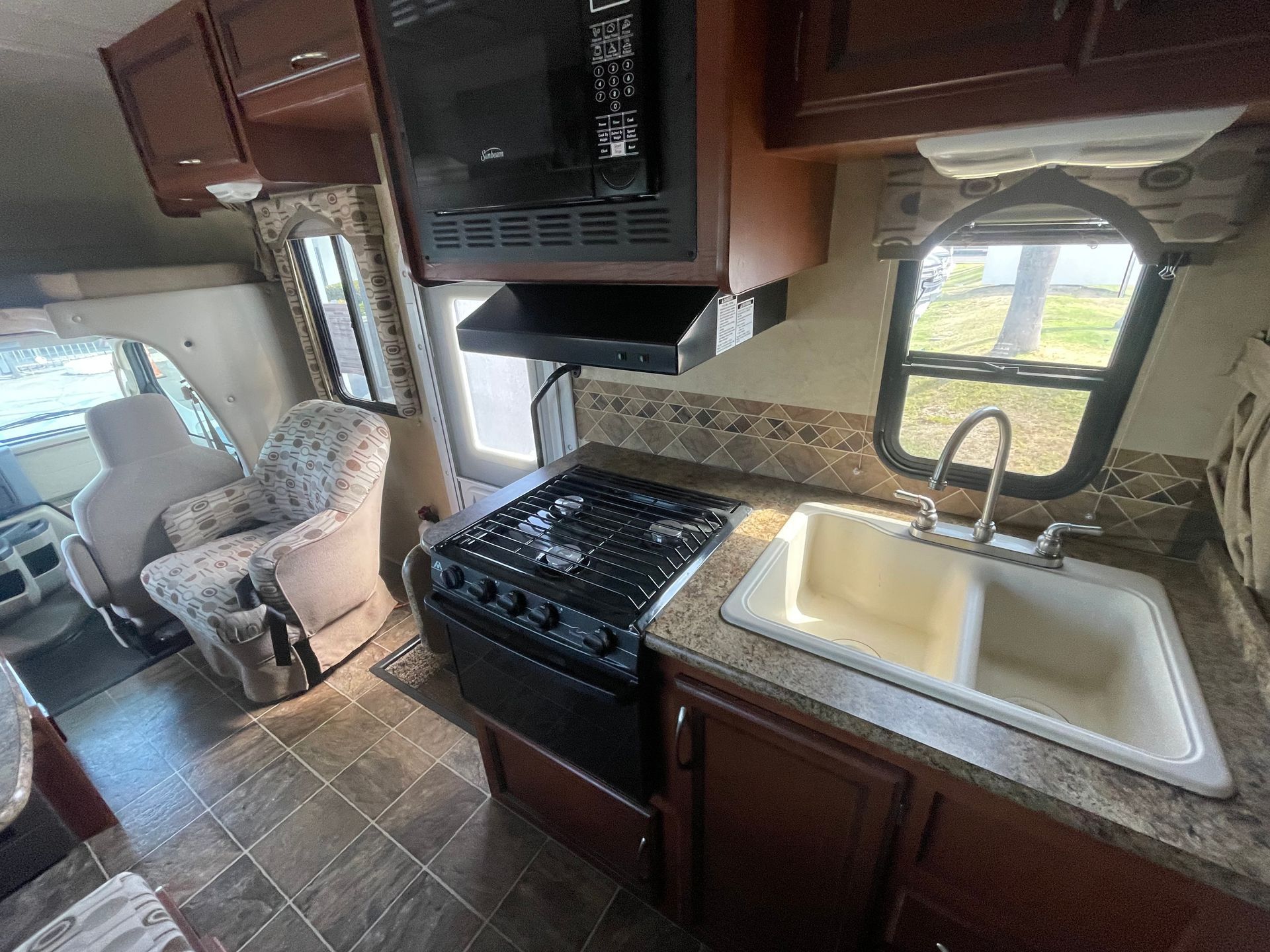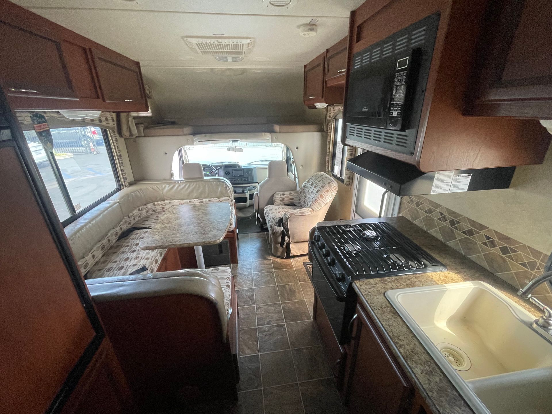 Large Dinette, 3 Burner Stove Top, Oven, Microwave, Refrigerator, Freezer, 2 Bay Sink