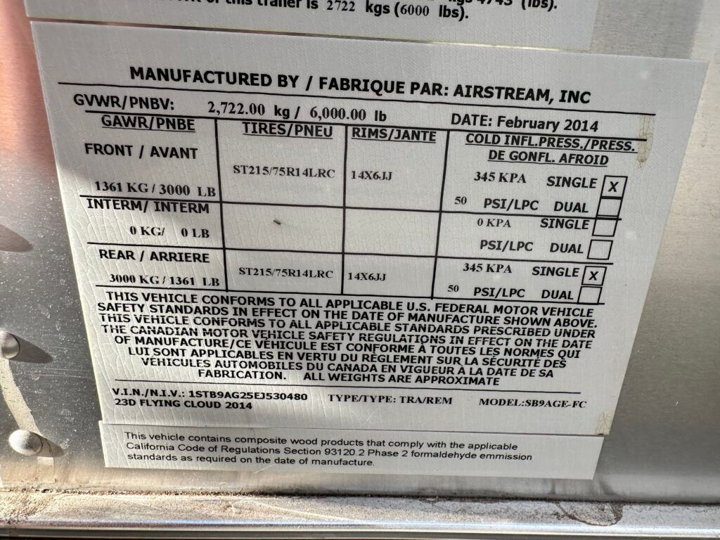 Here is the link to Airstreams brochure if you would like to see all the specs: https://recreationalvehicles.info/2014-airstream-travel-trailers/2014-airstream-travel-trailers-brochure.pdf