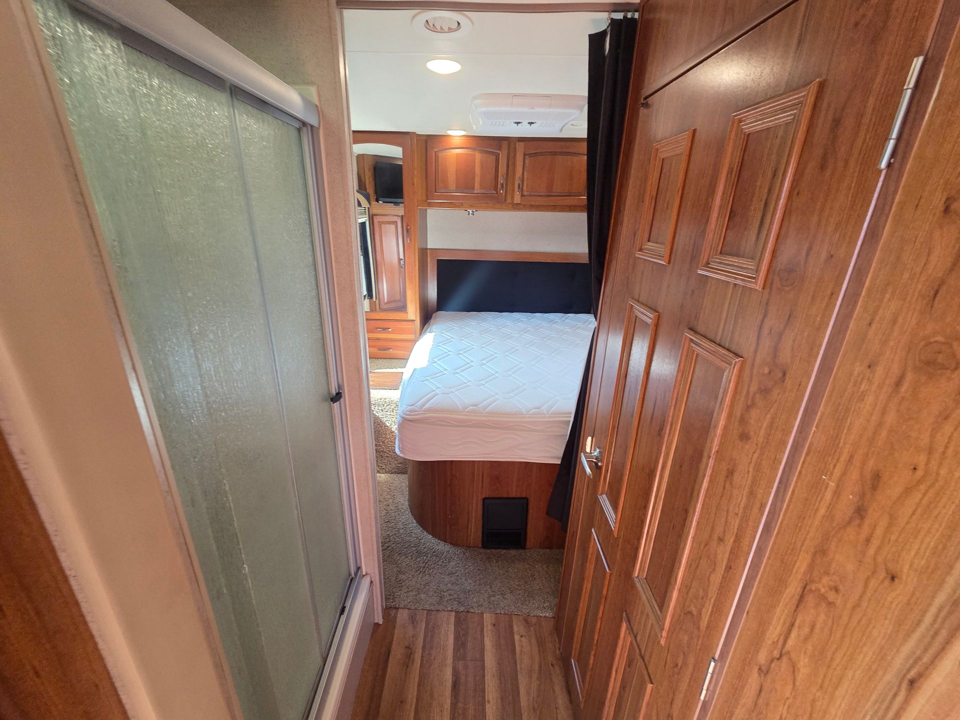 Rear walk around queen bed, dinette/sleeper, cab-over bed. Kitchen has Stove top, oven, microwave, dual sinks, 2 way fridge. Split bath with a walk in shower, vanity sink and toilet are separate and fully enclosed. Dual roof A/C units, ducted furnace, Onan 4.0 generator, Xantrex inverter, Power patio awning, Fantastic fan, back up camera, Power Automatic leveling, large rear storage. Great floor plan with many upgrades and very well maintained.