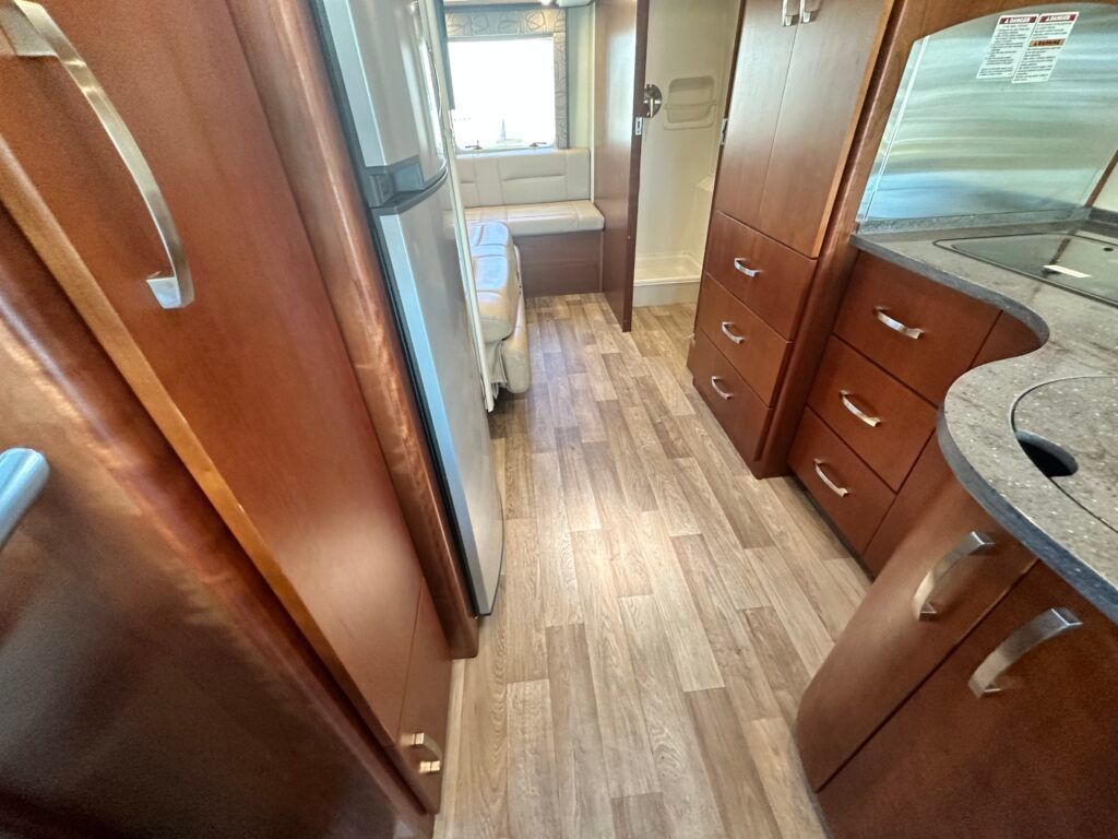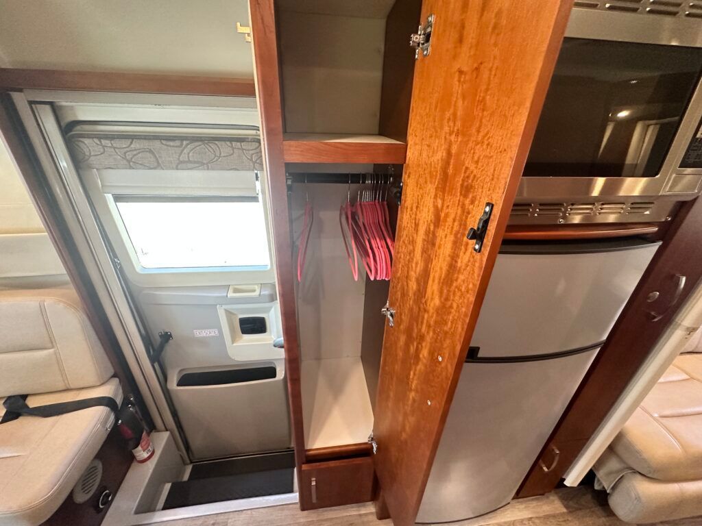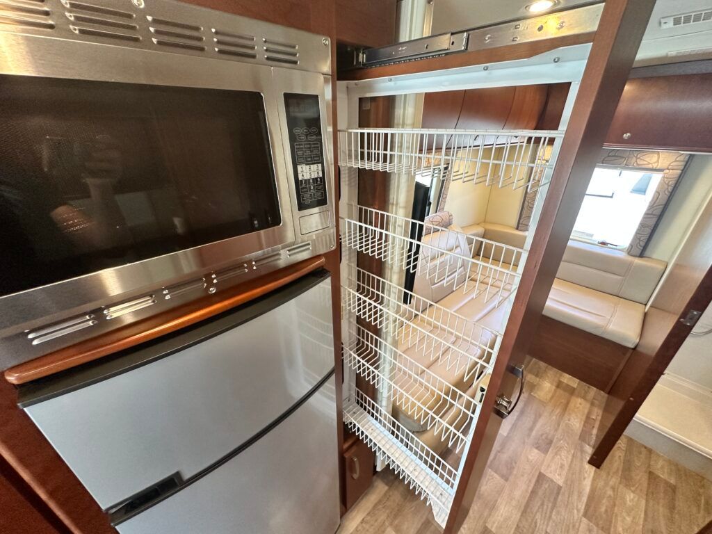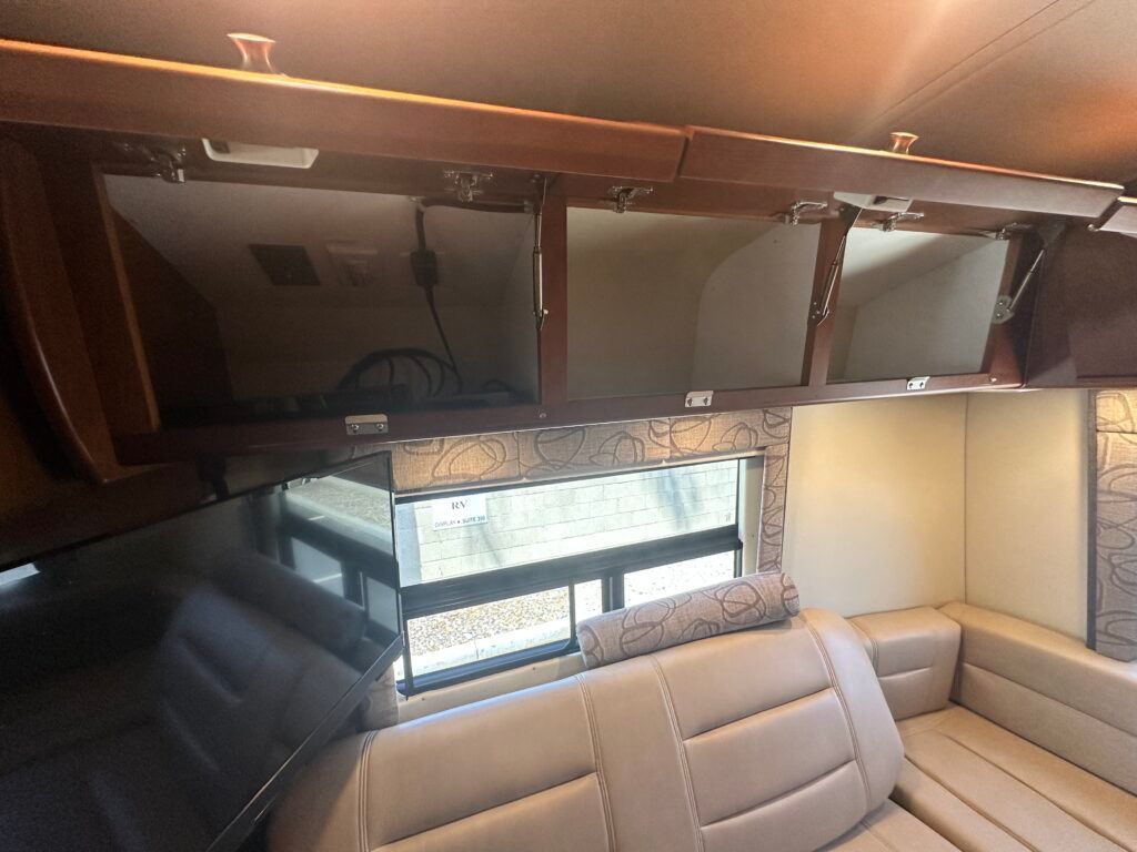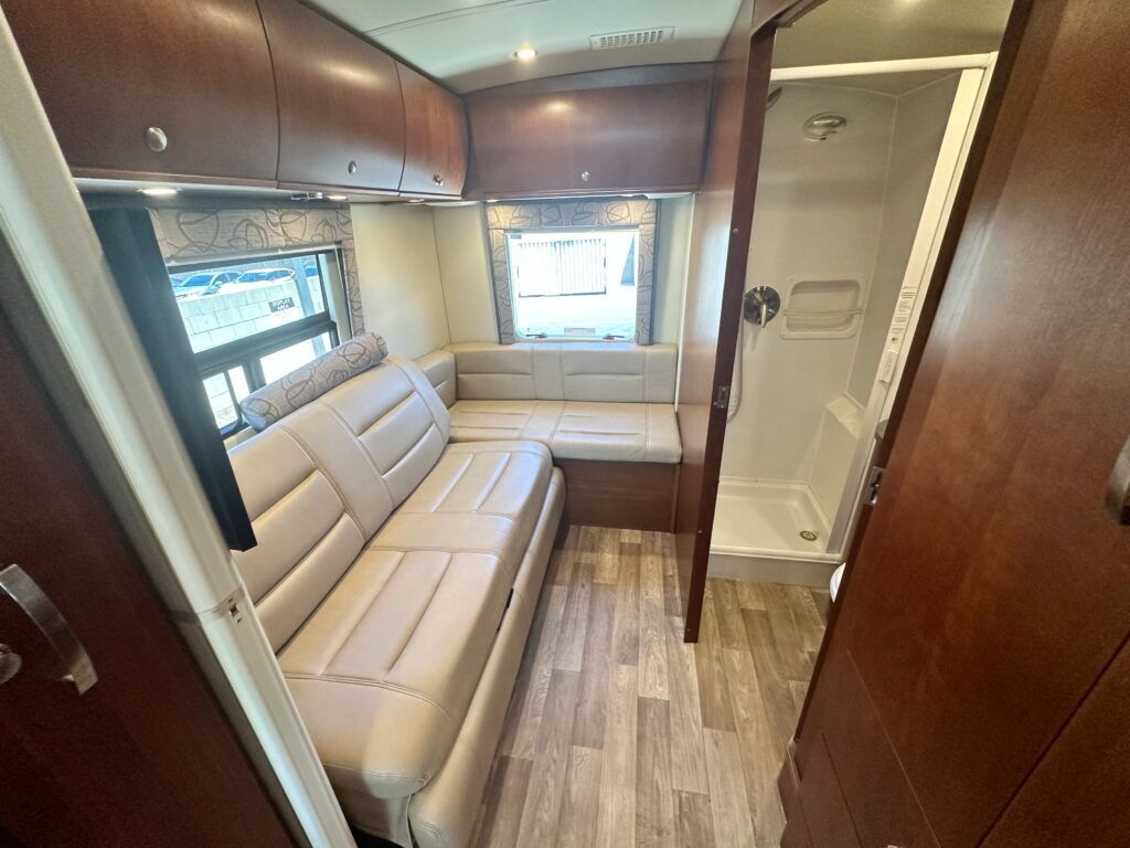 Heated Mirrors, Color Back up Camera, 2 Soft Leather Swivel Seats w/ Table Placement, Bluetooth Stereo w Speakers, Flatscreen TVs, Blu-ray/DVD player, Air Conditioning Unit, Ultraleather Dinette w Seat Makes Bed, Enclosed Rear bathroom, Glass Door Large Shower, Toilet, Sink, Large 2 Door Refrigerator, Beautiful Corian Counter tops, Stainless steel sink with Backsplash, 2 burner stove, Microwave Oven, Pantry with full Slide Out, Large Wardrobe, Soft Leather Power TriFold Sofa that folds into Queen size bed, Backdoor Access, Lots of over head Storage & Storage throughout Coach, Beautiful Flooring and Ceiling with accent lighting, And Much More!!!