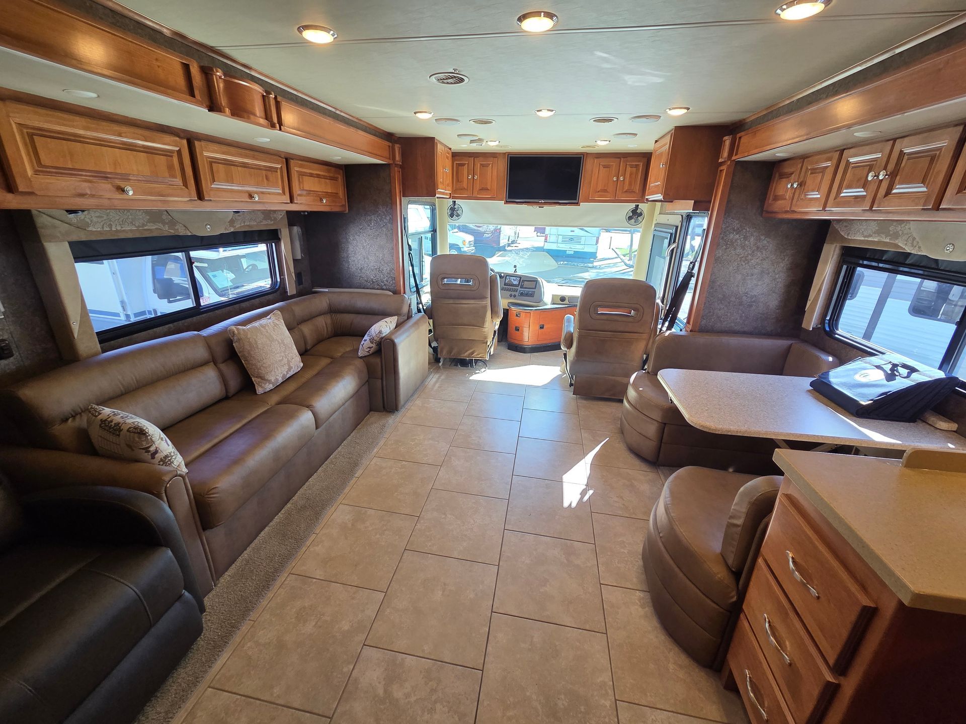 I own a small, licensed and bonded dealership in beautiful Orange County. I strive to have the nicest pre-owned on the market by spending lots of time and money on each of my coaches before they go back up for sale. There are no games and absolutely NO PRESSURE SALES...I don't believe in it. You only deal with me, the owner, until you buy and then you have the option of getting a walk through with the tech who went through the systems. I consider all forms of trade ins EXCEPT land. I also consider consignments. Tax, license, smog, doc and normal govt. fees not included in price-NO SURPRISES. Called to serve, I am more than happy just to give RV advice if you want/need it...I'm friendly. If I sound like someone you would like to do business with, please give me a call. Jeff (213) 210-5535-all class rv-1 2501 W Whittier Blvd., La Habra, CA 90631-DLR#47490 Vin#4UZACWDT8FCHA1342- $135,950.00-FIRM. MORE PICTURES at allclassrv.com/sales