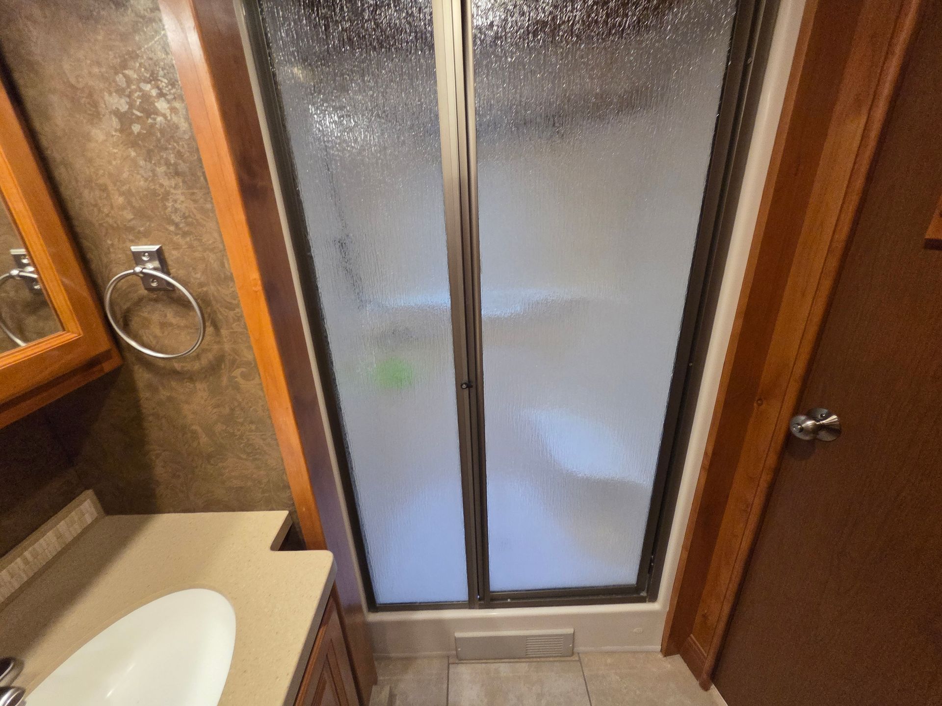 - Ceramic tile flooring in the living area.