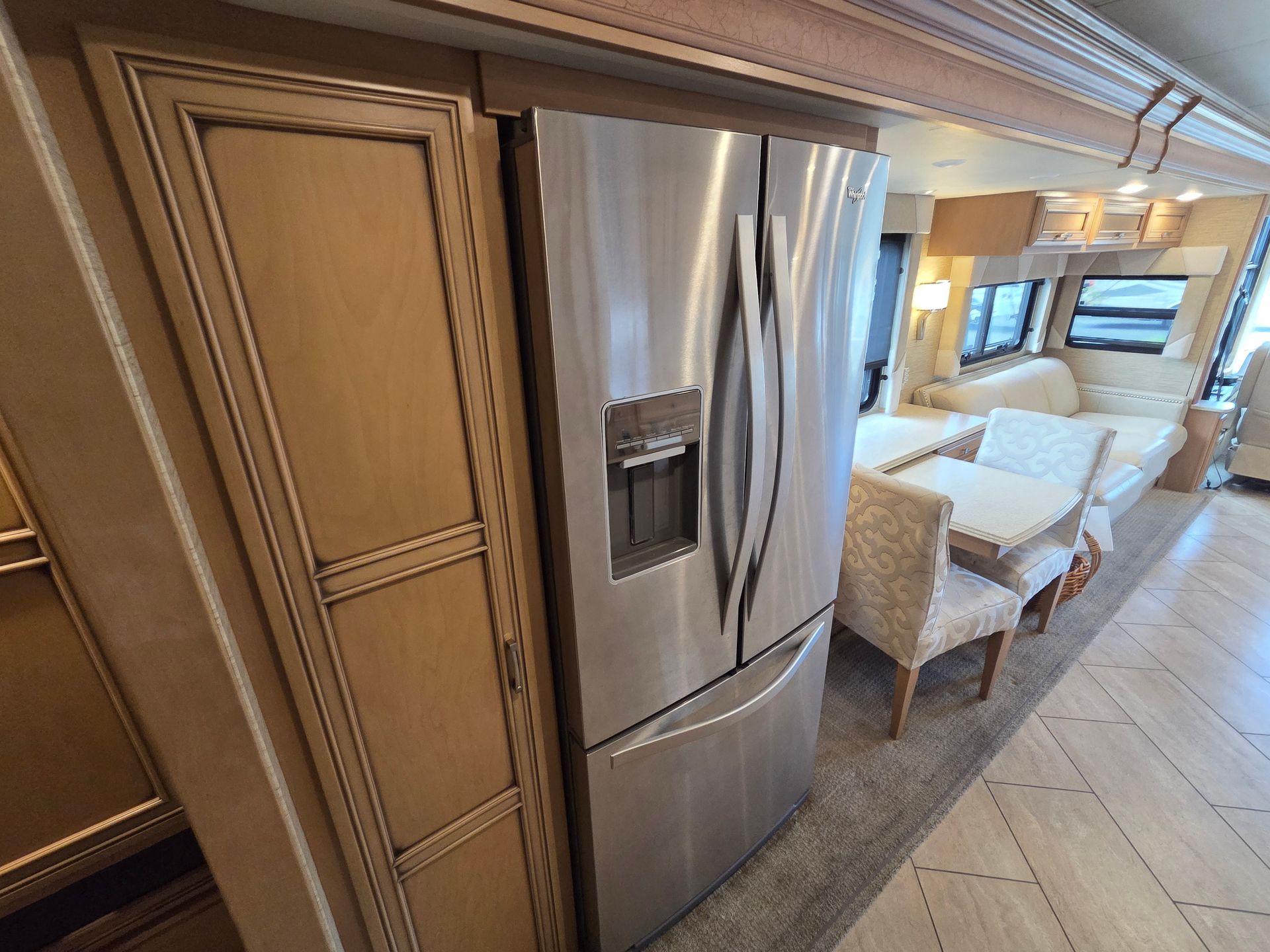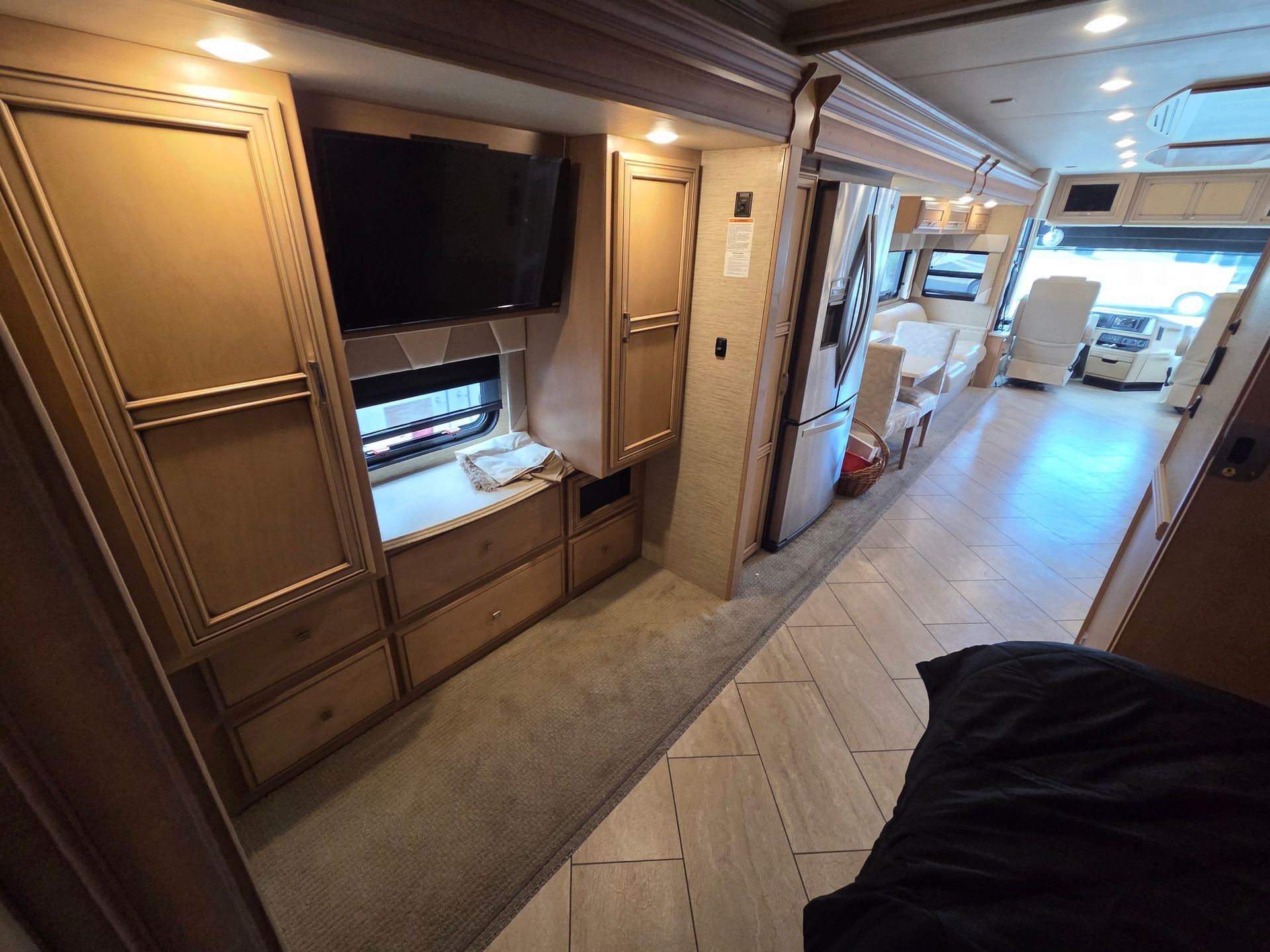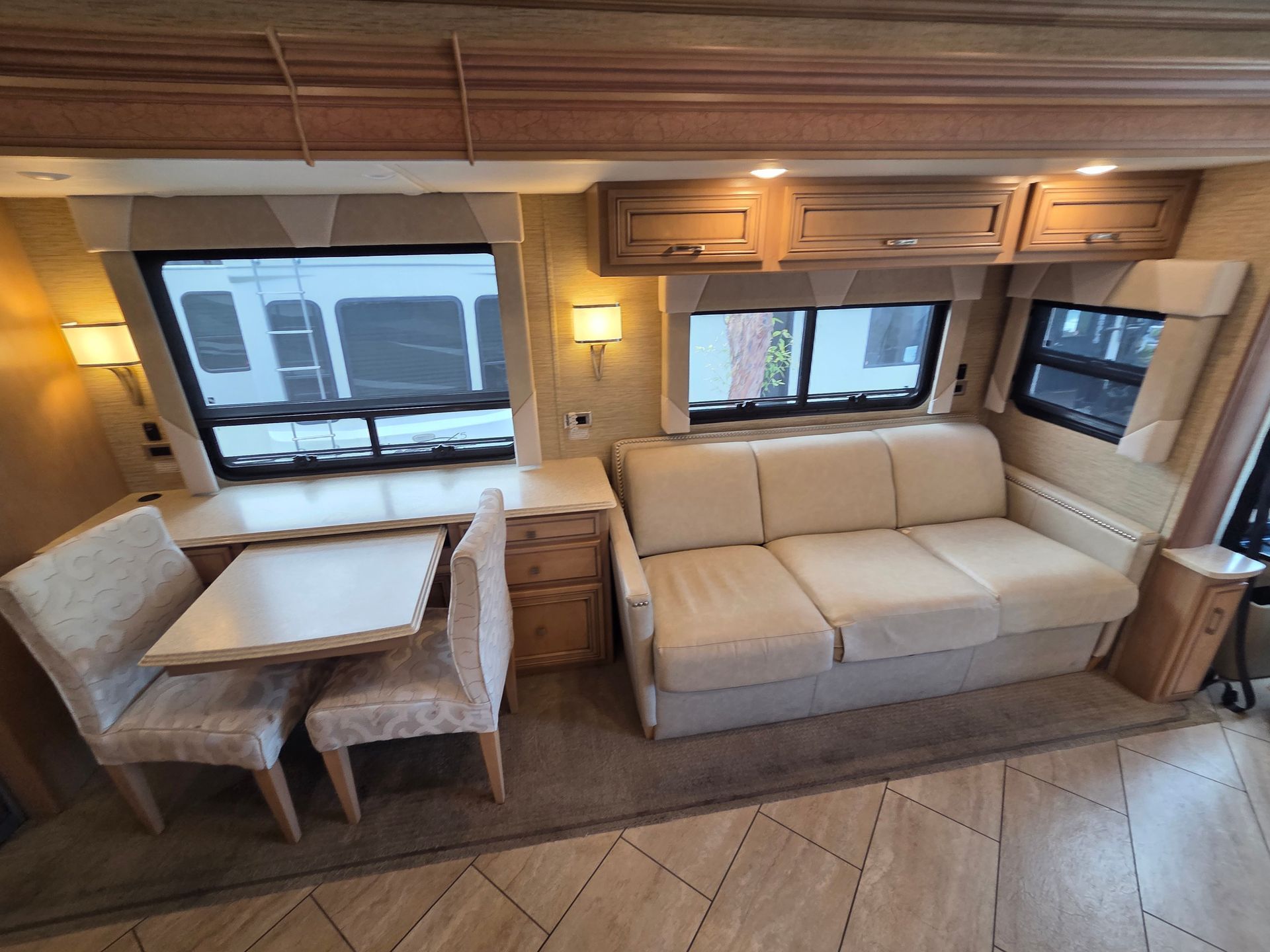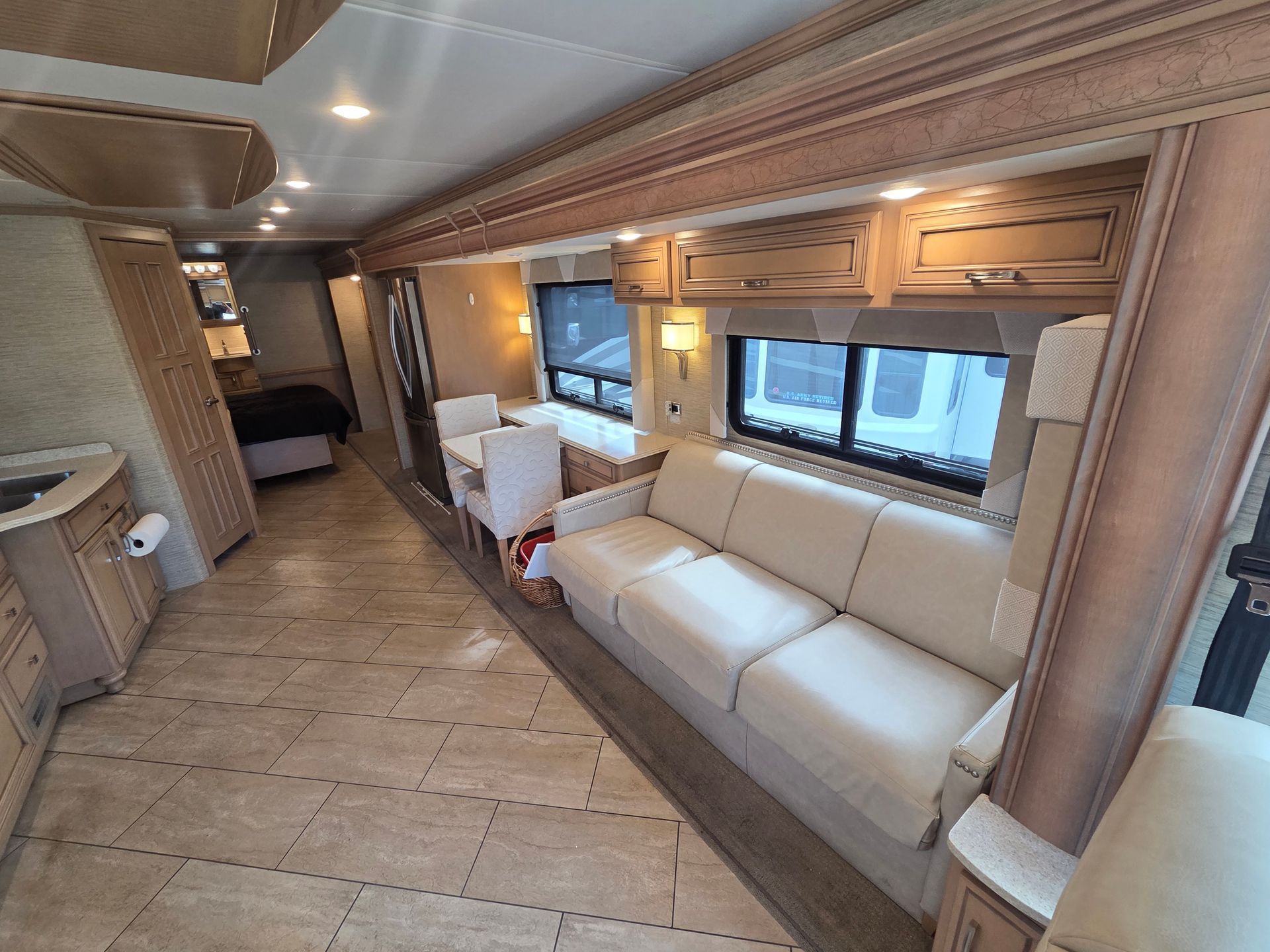 - Exterior: Full body paint, power patio awning, and a fiberglass roof