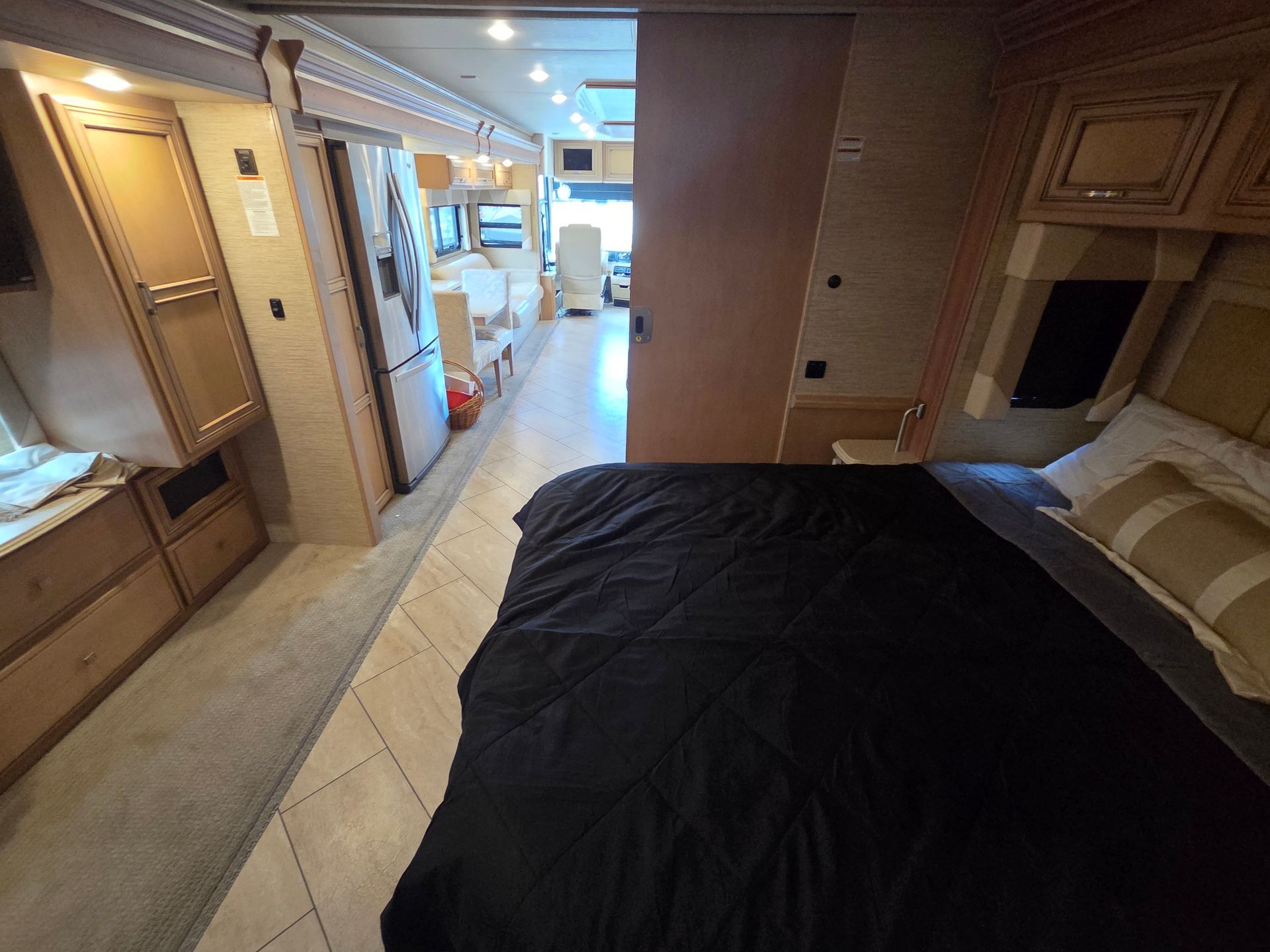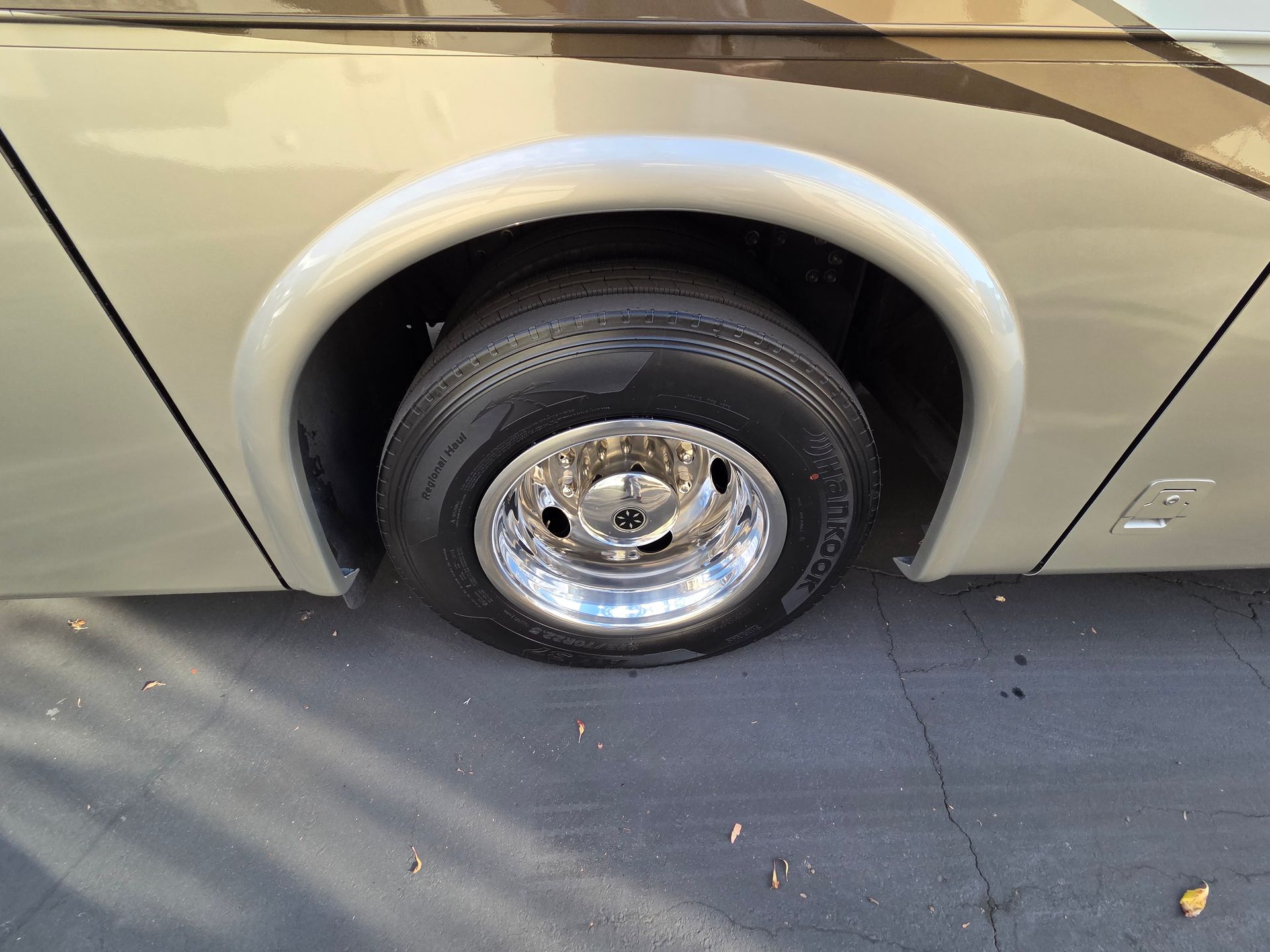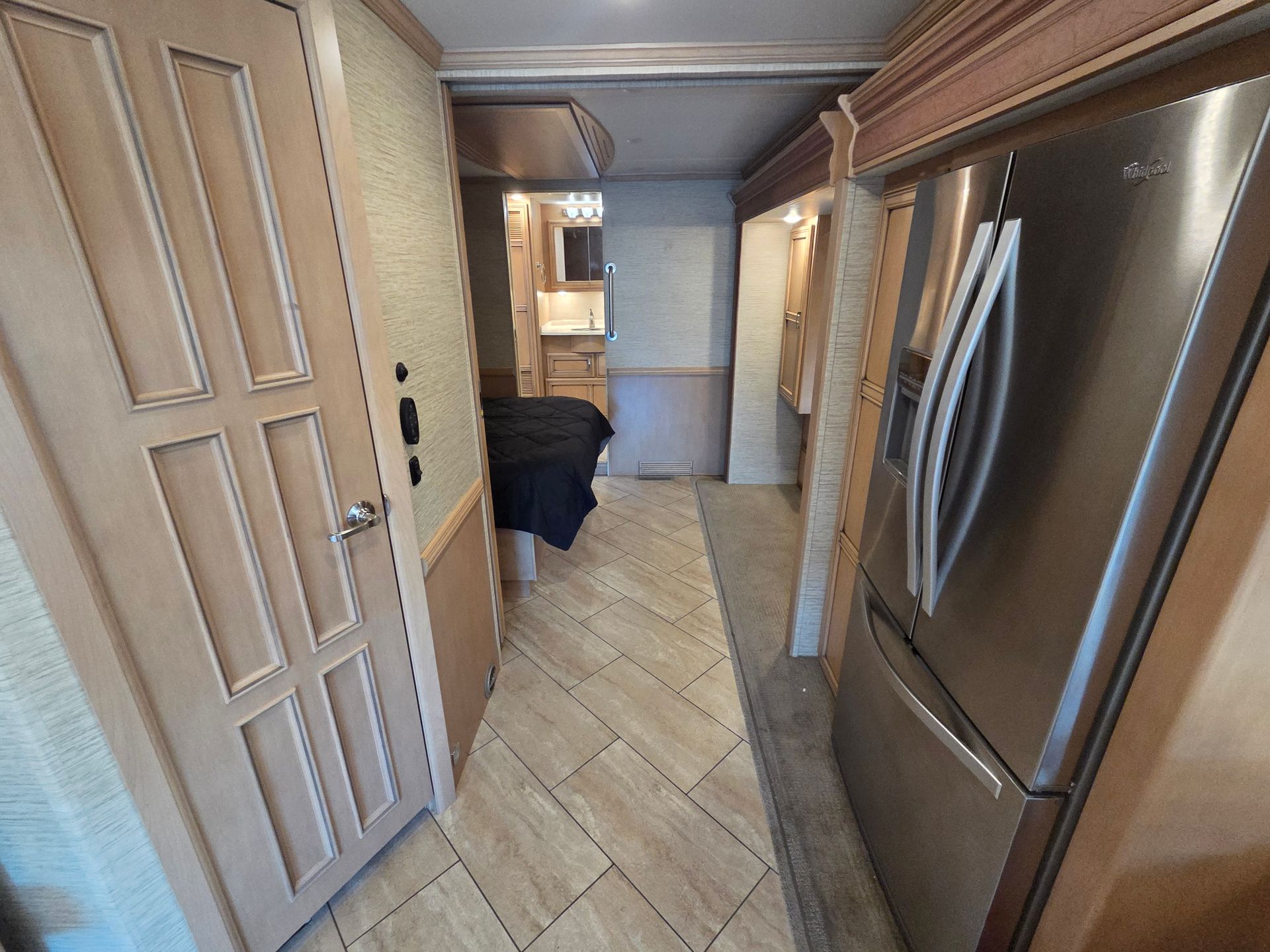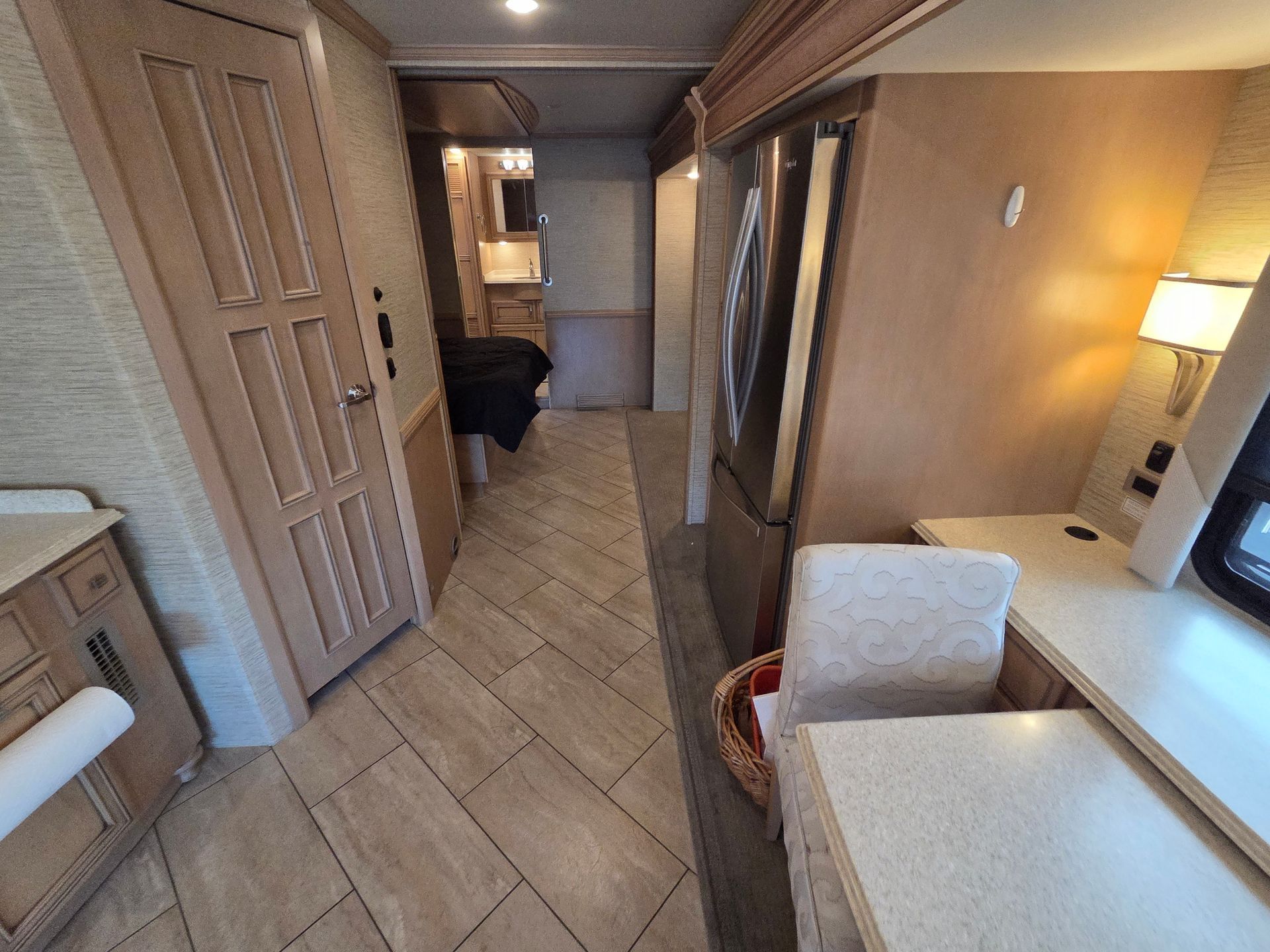 - Exterior: Full body paint, power patio awning, and a fiberglass roof