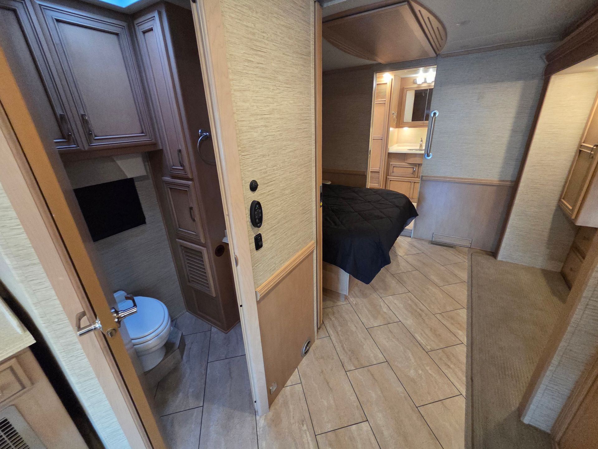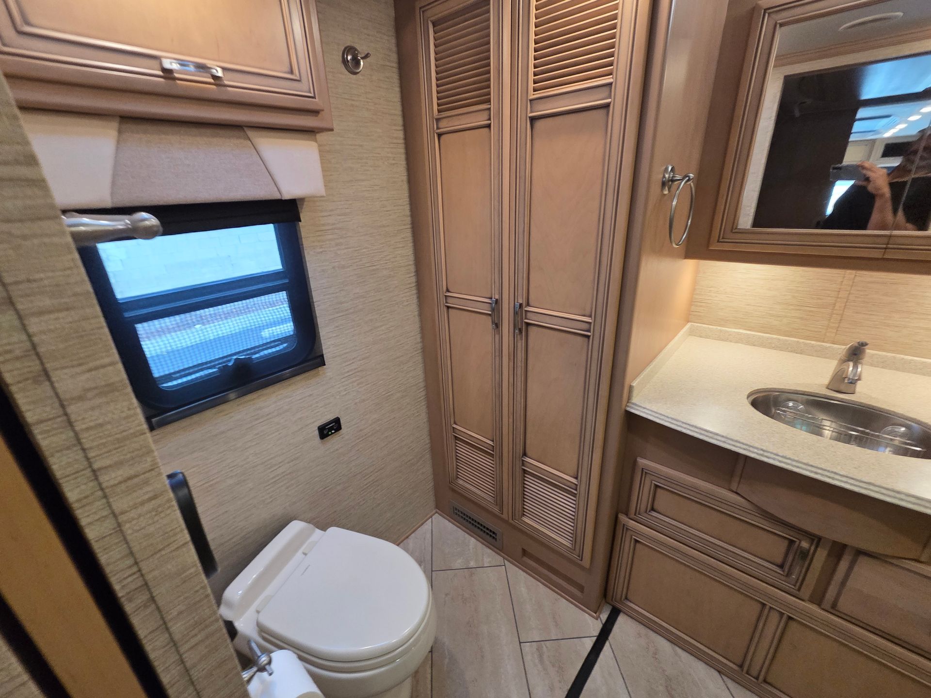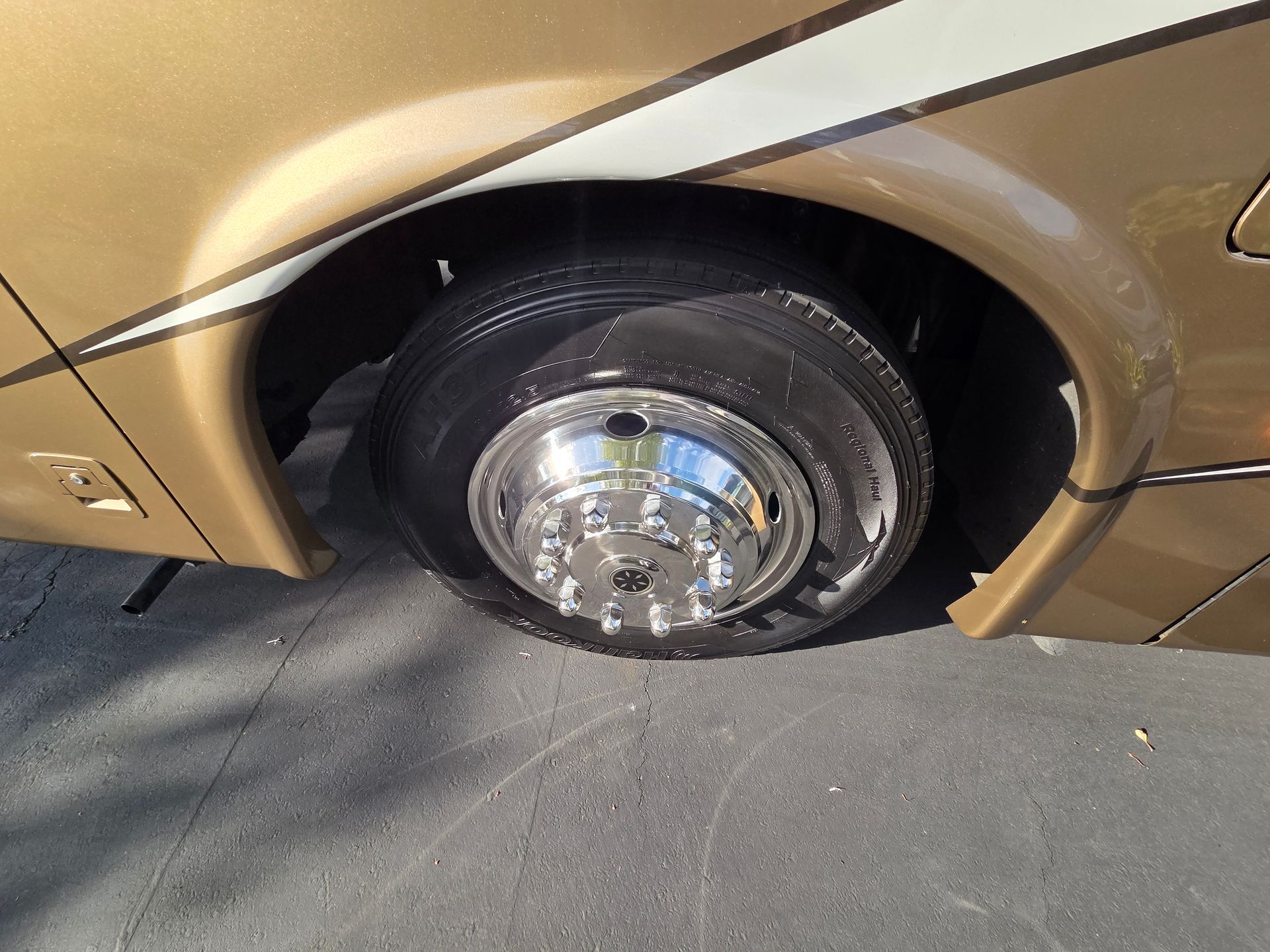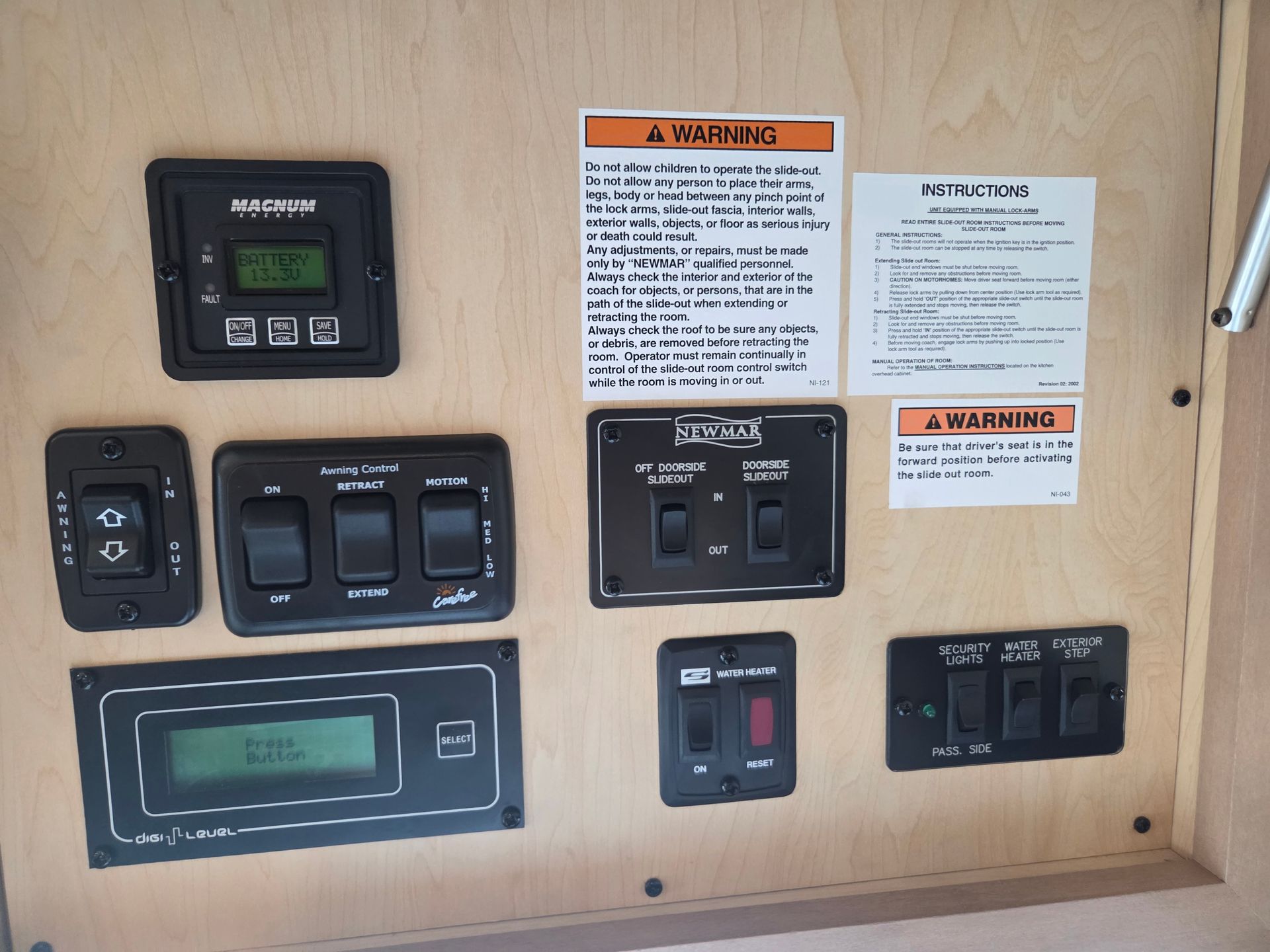 - Exterior: Full body paint, power patio awning, and a fiberglass roof