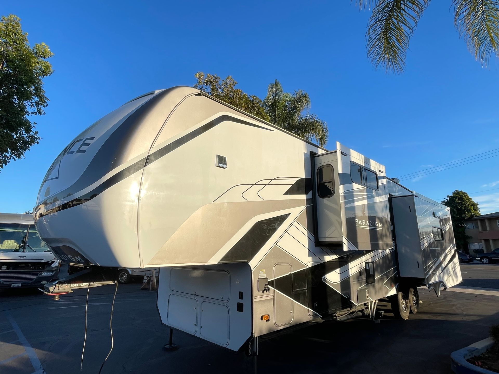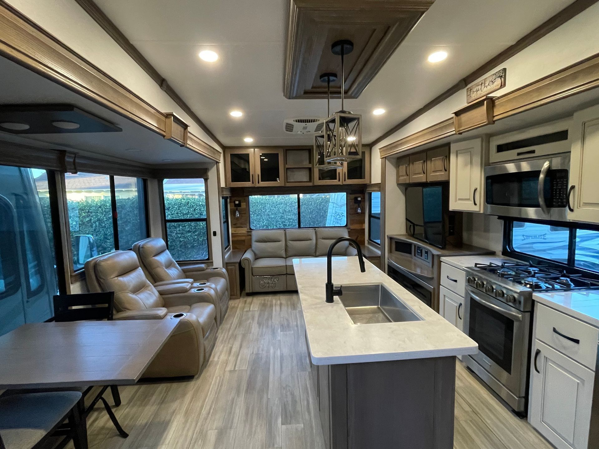 Beautiful 5th Wheel with Bath and a Half, Lithium Battery Setup, Solar, Large, Luxurious Ceiling, 2 Electric Awnings, and Much, Much More